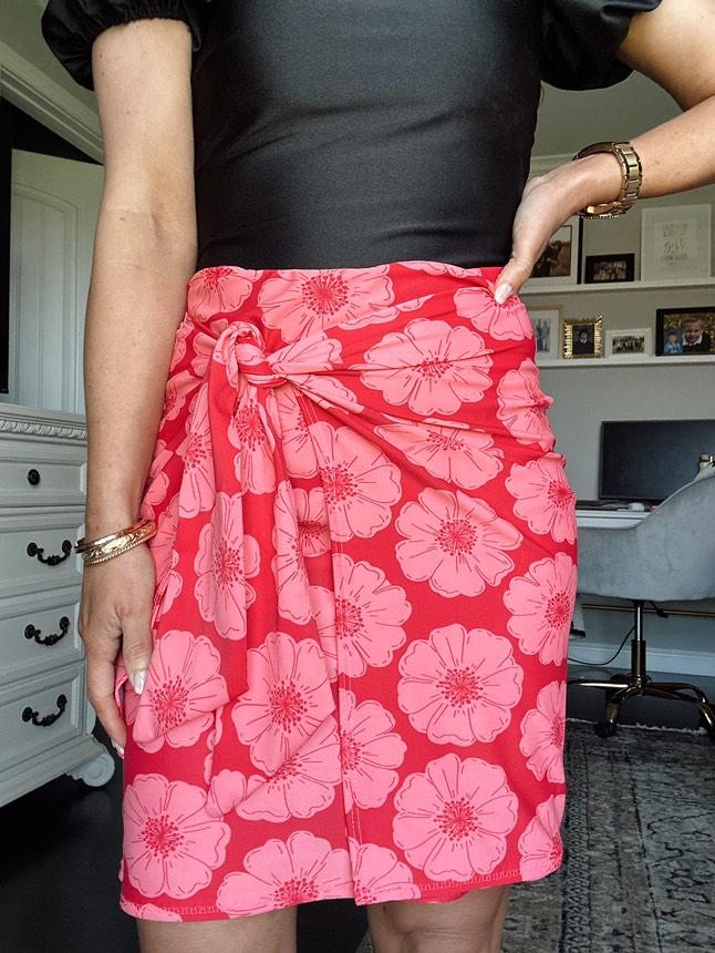 Coral Polka Dot Faux Wrap Style Swim Skirt with Built-in Short